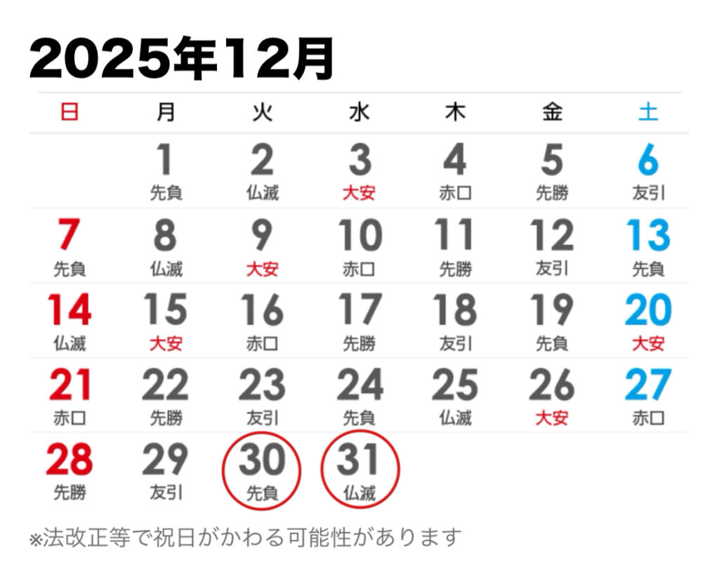 2025年12月30日(火)より2026年1月4日(日)まで