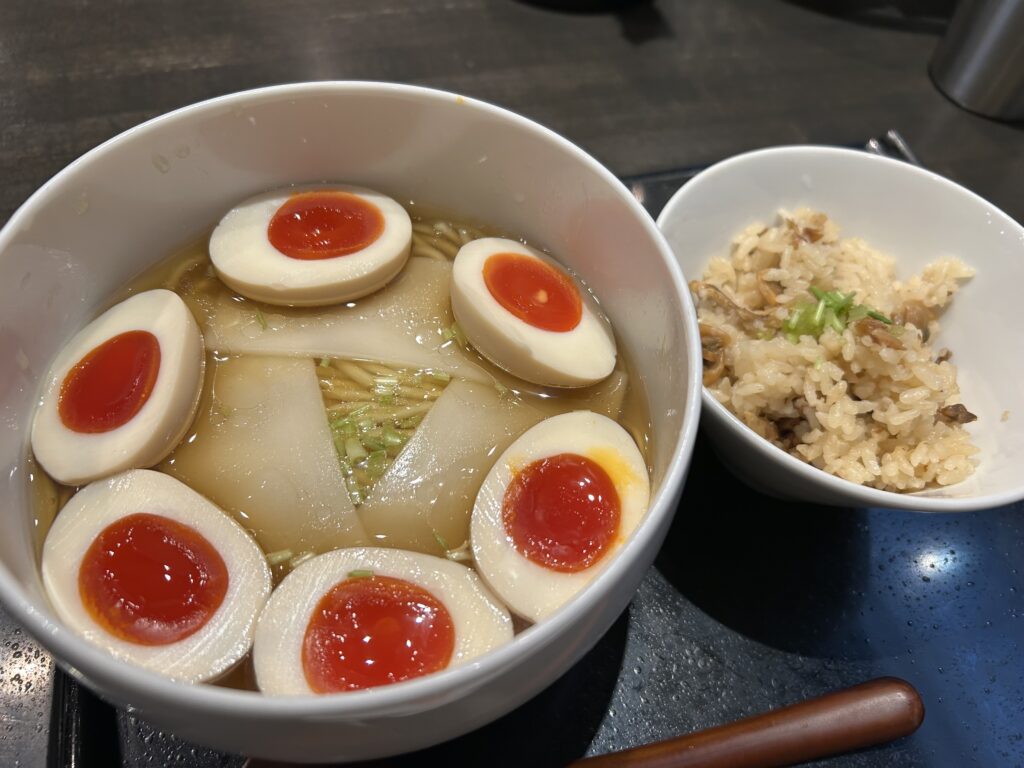 朝ラーで500円とリーズナブルでしたが、味玉が入っているのでトッピングしたのてわ卵まみれです💦
