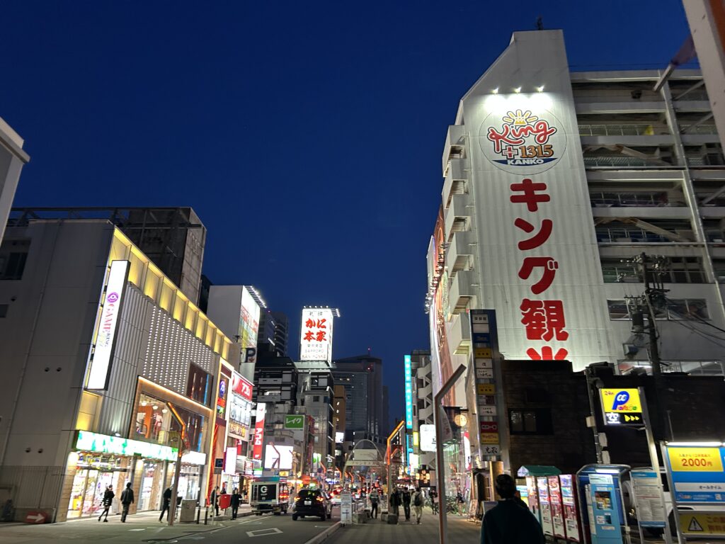 外に出たら少し薄暗くなってきて、繁華街の方に着く頃には暗くなってました😅