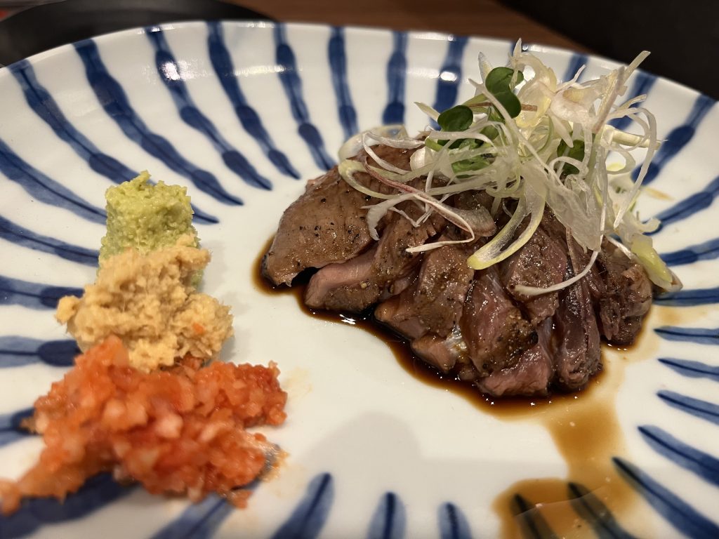 牛ハラミのたたきは藁で炙っているものです!柔らかくてスジっぽさもありません‼︎