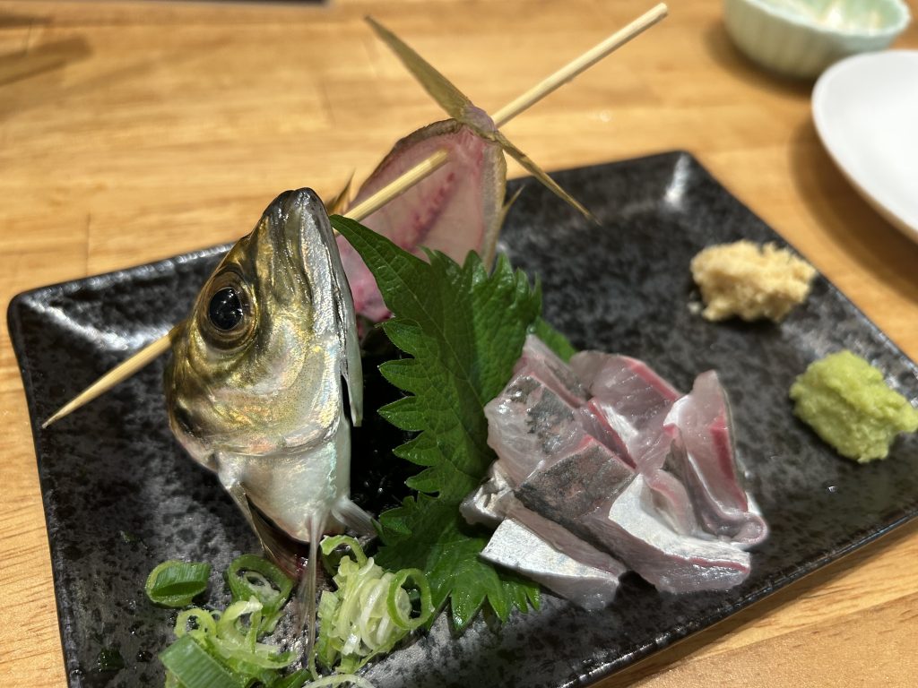 この「踊りあじの刺身」は店内の生簀で泳いでいたものを網ですくって捌いてくれるので鮮度はバツグンです👍