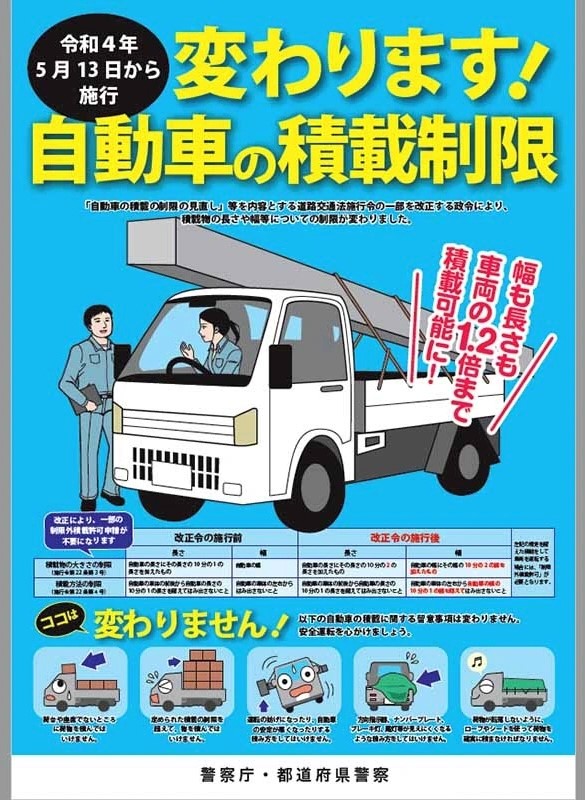 2022年5月13日に改正令が施行され積載物の大きさや積載方法の制限が緩和になっています✨